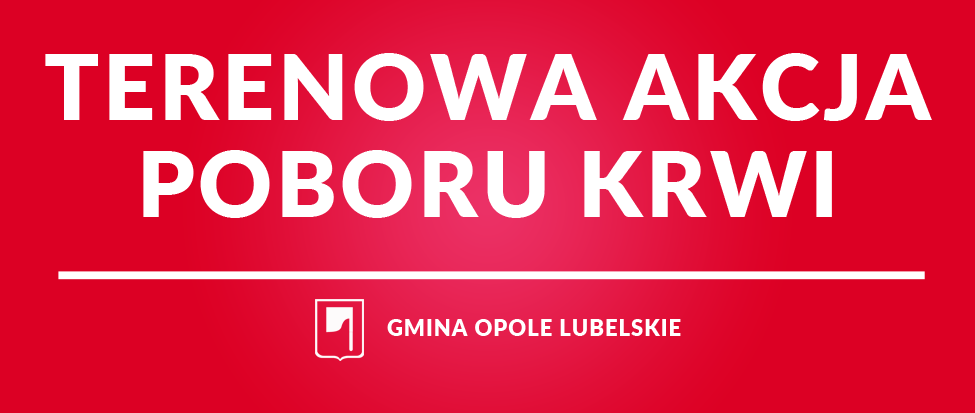 Zapraszamy mieszkanców do udziału w kolejnej w tym roku, terenowej akcji "Podaruj krew, uratuj życie!", organizowanej przez Regionalne Centrum Krwiodawstwa i Krwiolecznictwa w Lublinie. Akcja odbędzie się już 15.03.2023 roku (środa) w godzinach 9:00-13:00, na parkingu przy Urzędzie Miejskim w Opolu Lubelskim.
