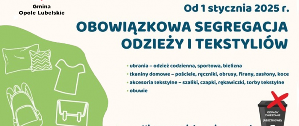 Przypominamy też, że w przypadku ubrań które nadają się do dalszego użytku istnieje możliwość oddania ich do kontenerów na ubrania, dzięki czemu trafią one do osób potrzebujących. Na terenie Opola Lubelskiego tego typu kontenery są ustawione w wielu miejscach (np. na osiedlach, przy SP Nr 1, przy cmentarzu).